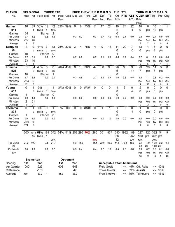 Olympic - 2 16 8 6 - 32 Bremerton - 20 25 14 18 - 77