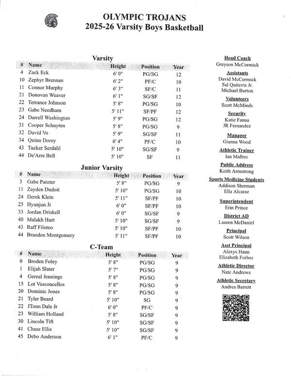 The Knights wreaked havoc on the perimeter as usual but when Olympic did get into the front court, they found the Knights’ height standing tall in the middle.