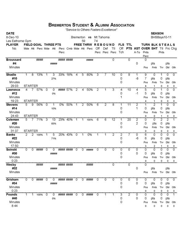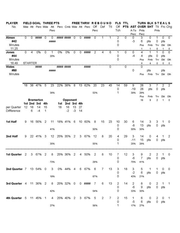 BHS Boys Varsity | 12 | 18 | 14 | 15 | 59 |