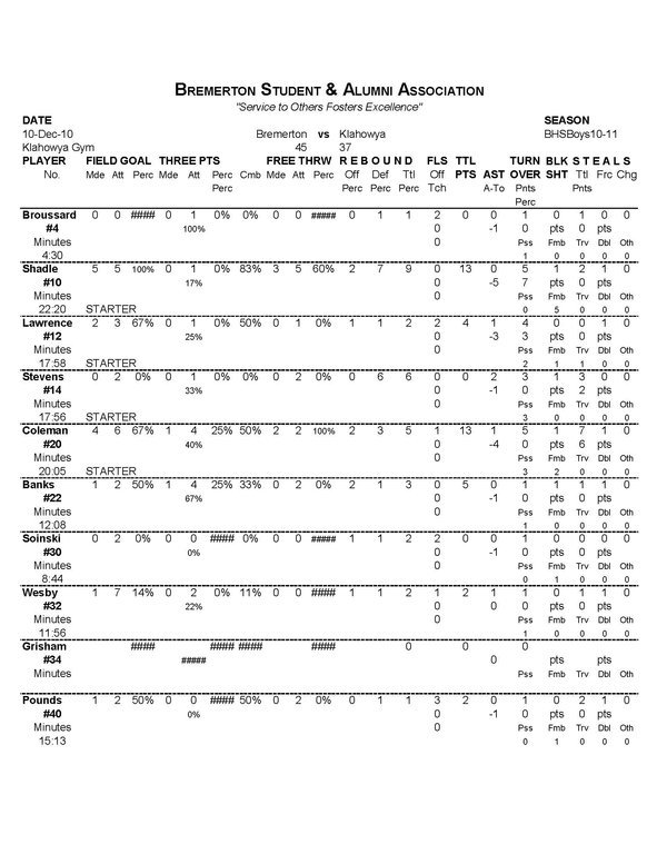 BHS Boys Varsity | 16 | 10 | 13 | 6 | 45 |