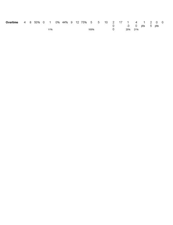 | 14 | Almen, Kevin | 1 | 1 | 100.0 | 1 | 1 | 100.0 | .0 | .0 | 1 | 1 | .0 | 2 | ||||||||||||
