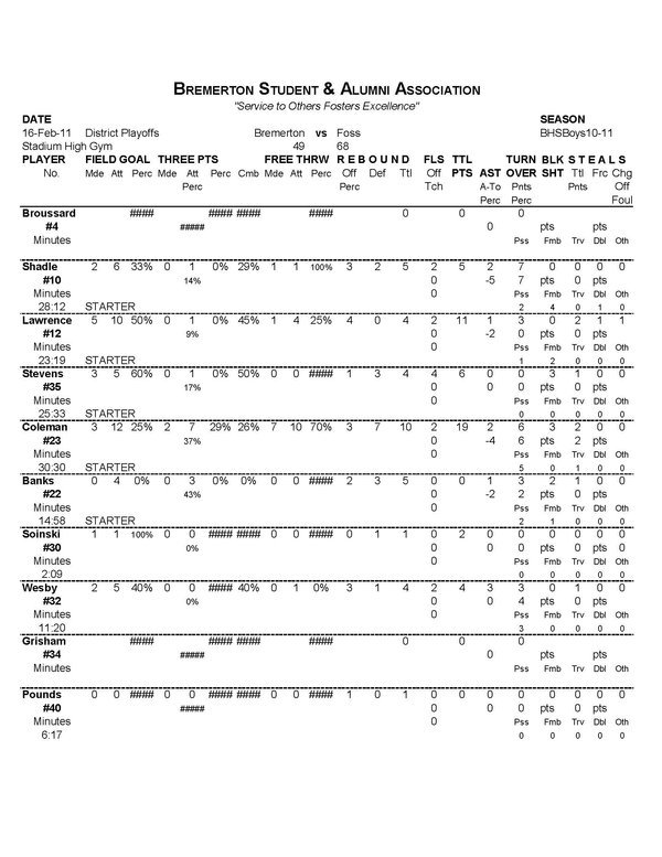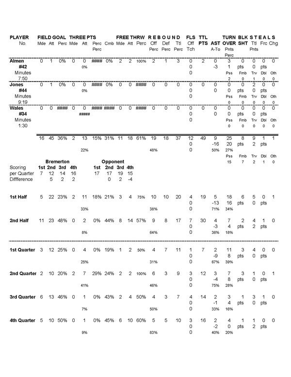 BHS Boys Varsity | 7 | 12 | 14 | 16 | 49 |