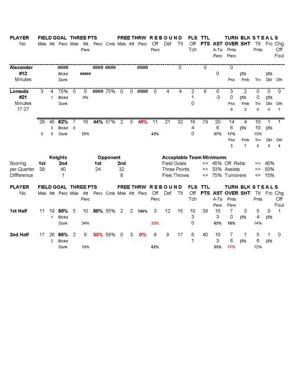 | 2 | Matthews, Aaron | 1 | 31 | 8 | 14 | 57.1 | 7 | 12 | 58.3 | 1 | 2 | 50.0 | 2 | 4 | 50.0 | 1 | 4 | 5 | 9 | 1 | 9.0 | 7 | 1 | 1 | 19 | |