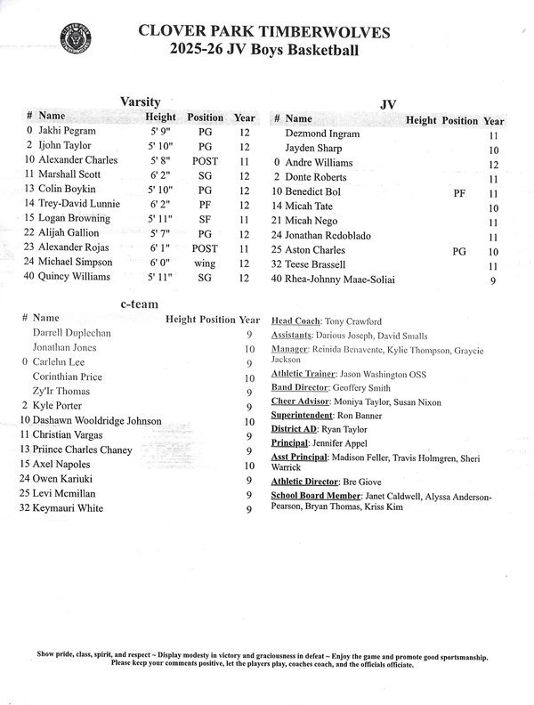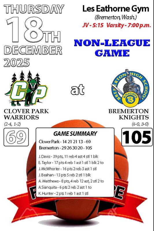 Clover Park Timberwolves | 14 | 21 | 21 | 13 | 69 |