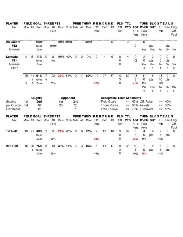 Aaron Matthews led the Knights (8-0 Olympic League, 13-1 overall) with 19 points and six assists, followed by Junior Davis-McWhorter with 17 points and 10 rebounds, and Enoch Taylor with 11 points,