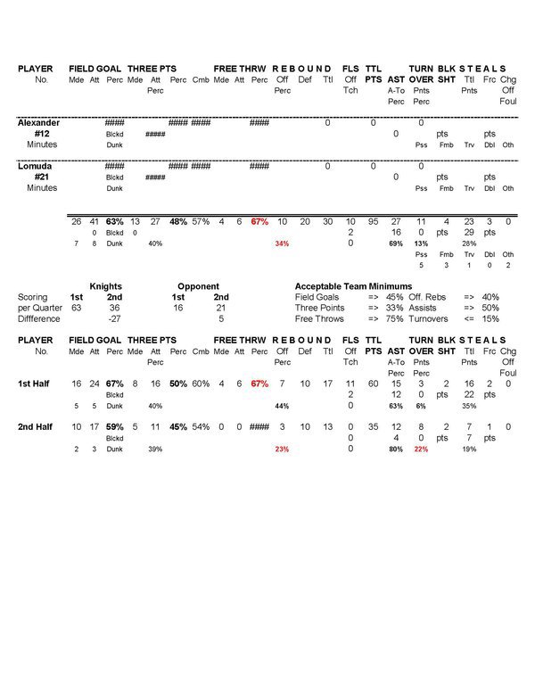 The Knights unofficially were 38 of 62 from the field, shooting at 61 percent, as it seemed anything they put up, went in against the Vikings (1-2, 1-5).