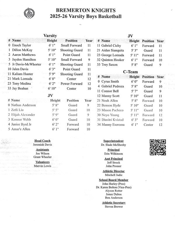 Bremerton will be busy over the holiday season, with games against Black Hills before Christmas, Kennedy after Christmas, and Eastside Catholic to start 2026.